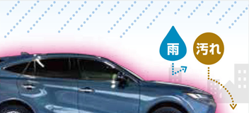 過剰なまでのツヤと撥水 + 雨が洗車になる強い自浄効果 |